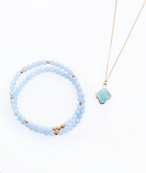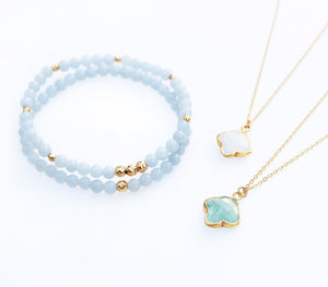 Aquamarine is known for its fresh, luminous blue tone and is traditionally linked to clarity, ease, and a balanced state of mind. It carries a cool, refined brightness that feels effortlessly modern, often chosen for its calming presence and uplifting energy.