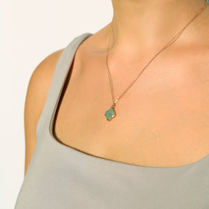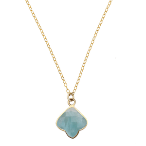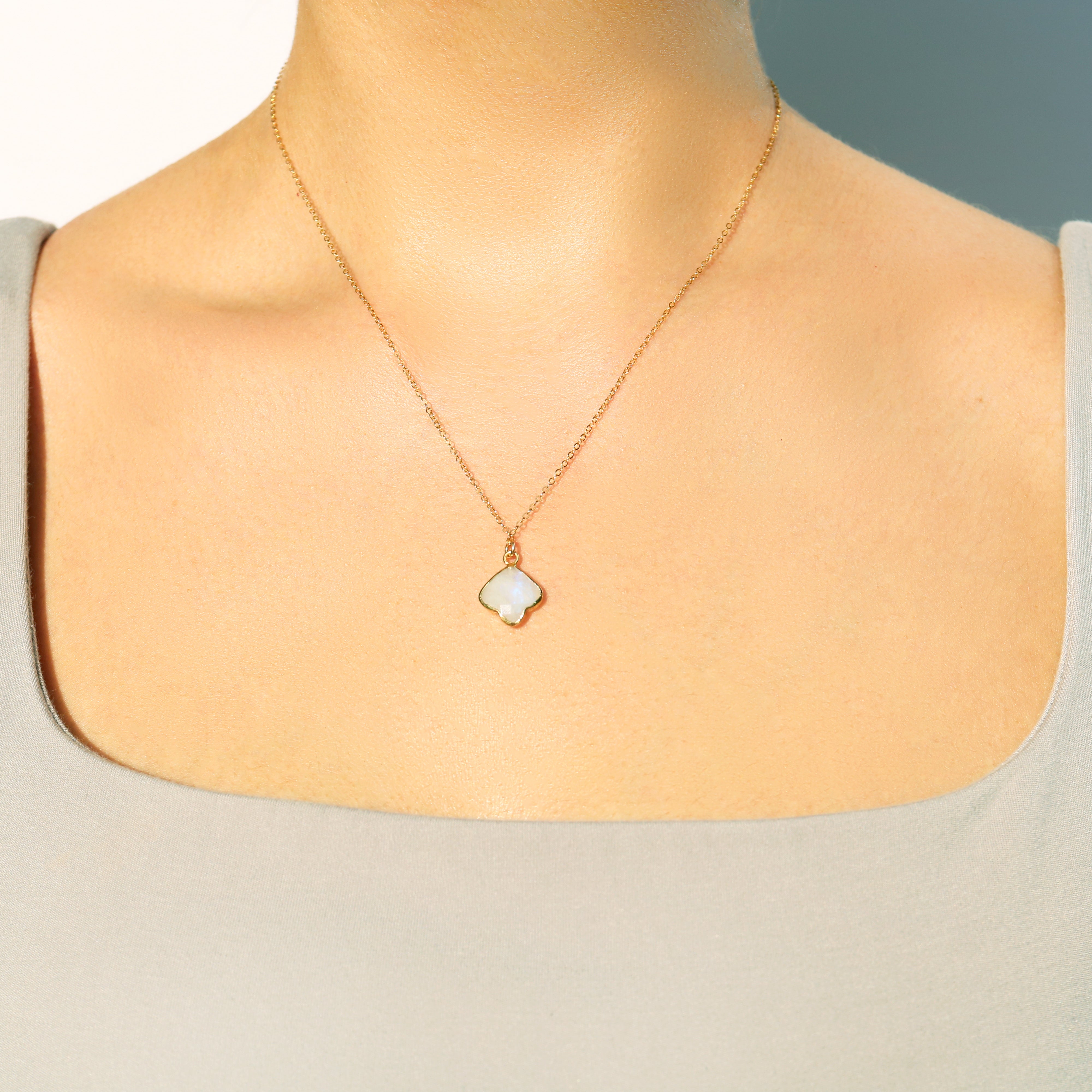 Delicate statement pendant necklace featuring natural high grade aquamarine moonstone and gold.
