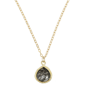 Be statement-ready in the Black Solstice Teardrop Necklace. Featuring natural black rutilated quartz set in gold vermeil and strung on a gold-filled chain.