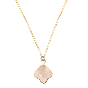 Delicate statement pendant necklace featuring natural high grade natural rose quartz and gold.